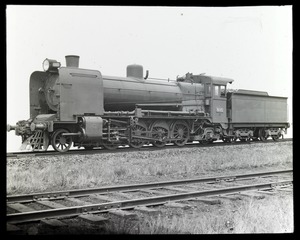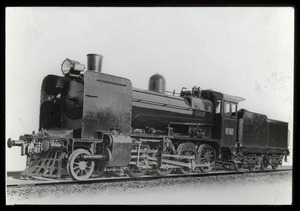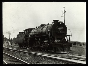 [Steam locomotive and tender near loco yards]
