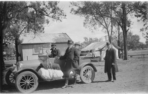 Railway (?) camp, 4 men + a car