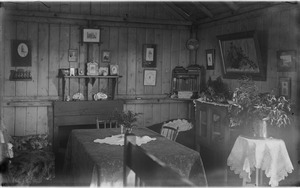 Two women and man and dog on verandah ca. 1914