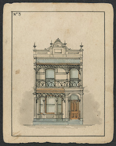 Collection of architectural drawings for the Theatre Royal Bourke Street Melbourne by George Browne with alterations by William Pitt and others Geo Browne Architect Surveyor 28 Collins St West