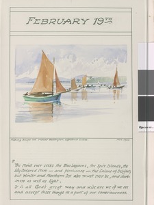 February 19th. Fishing boats on Mount Wellington. Gippsland Lakes, Nov. 1920