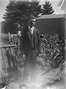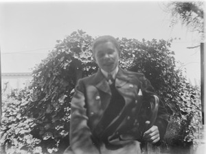 [Man seated in a garden]