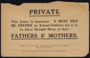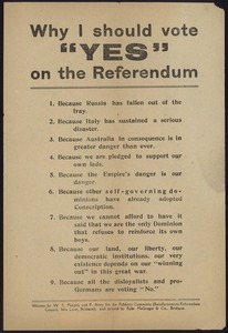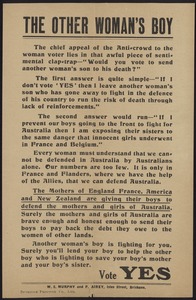 Leaflets promoting a Yes vote in the Referendum over Conscription during First World War