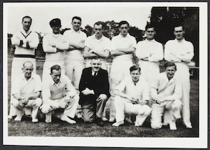Victorian cricket team (players wearing caps) match against New South Wales at Barker College Ground Waitara