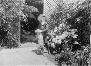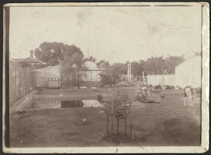 "Anderson family in garden at Mynda, two youngest girls sitting in what is possibly a dog or goat cart"