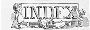[Punch and his dog, Toby, standing either end of a sign which reads: Index]