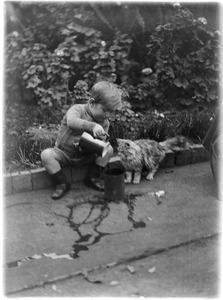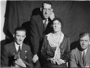 [Group showing unidentified man holding a cat, Walter McRae Russell, unidentified woman and Rimundi Budica]