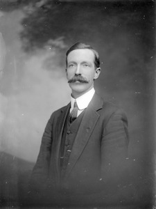 [Studio portrait of man, head and shoulders, slightly to right, with moustache and mutton-chop whiskers]