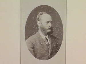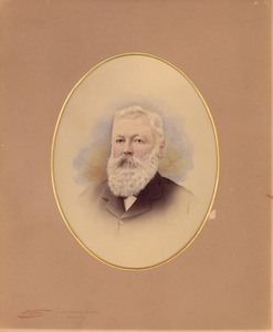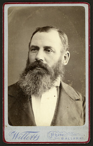 [Studio portrait of man, head and shoulders, to right, with full beard and moustache]