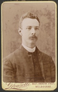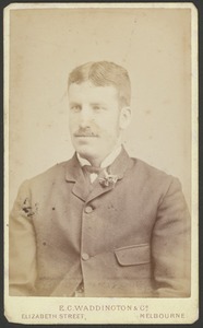 [Bust portrait of young man, full face, with moustache]