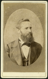 [Bust of a man, full face, with full beard and moustache, wearing suit and tie]