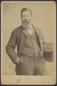 Unidentified man, half-length, slightly to right, with full beard and moustache, holding a top hat.