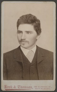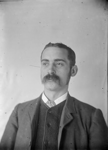 Portrait photograph of an unidentified man with moustache.