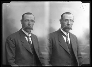 [Studio portrait of unidentified man, bust, full face, full beard and moustache]