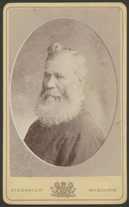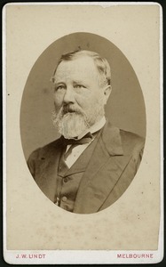 [Studio portrait of man, head and shoulders, to right, with beard and moustache]