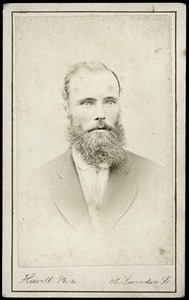 [Studio portrait of unidentified man, bust, to left, full beard and moustache]
