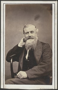 [Half-length portrait of man, almost full face, sitting, full beard and moustache, right hand up to face]