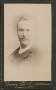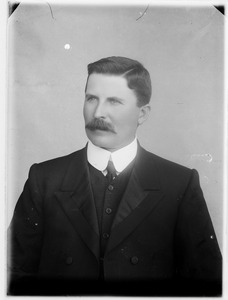 [Studio portrait of man, head and shoulders, almost full face, with moustache]