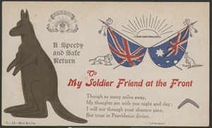 A Speedy And Safe Return To My Soldier Friend Postcard, World War I