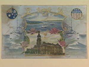 [Postcard to mark the arrival of the U.S. fleet in Aust.]