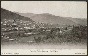 Postcard of Victorian Alpine Scenery, Wandiligong, a portrait photograph and an exterior photograph of an Australian Tannery and its workers.