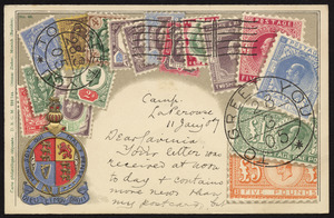Postcard with British stamps and coat of arms