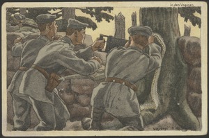 [German soldiers manning a machine gun, postcard, World War I]