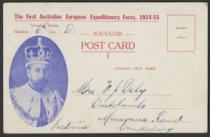 Souvenir postcard, the First Australian European Expeditionary Force, 1914-1915