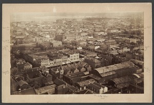 Looking East showing the Eastern Market sheds, Princess Theatre and St. Patrick's Cathedral.