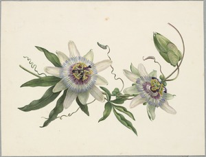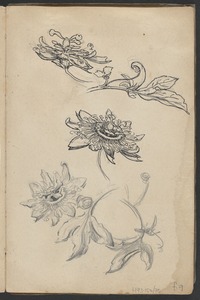 [Five drawings of passion fruit flowers and foliage]