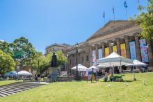 The Library's impressive galleries and spaces can be hired as unique locations for films, product advertisements, fashion shoots and television shows or documentaries. To discuss your requirements, email commercial@slv.vic.gov.au
